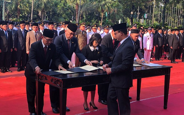 "Saya minta hormati warga Jakata. Layani warga Jakarta dan pastikan mereka merasakan kebahagiaan karena pejabat di DKI mengedepankan warga," kata Anies.