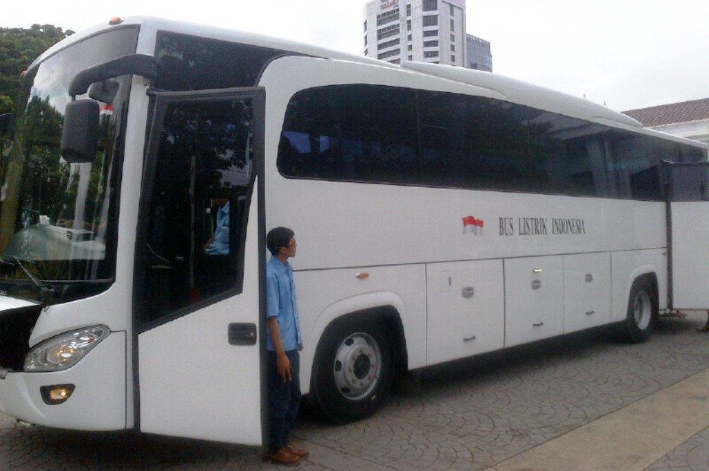 Bus ini merupakan karya anak bangsa dengan produsen, PT Sarimas Ahmadi Pratama. Selain bus, terdapat mobil listrik mirip Toyota Alphard yang juga ikut dipamerkan.