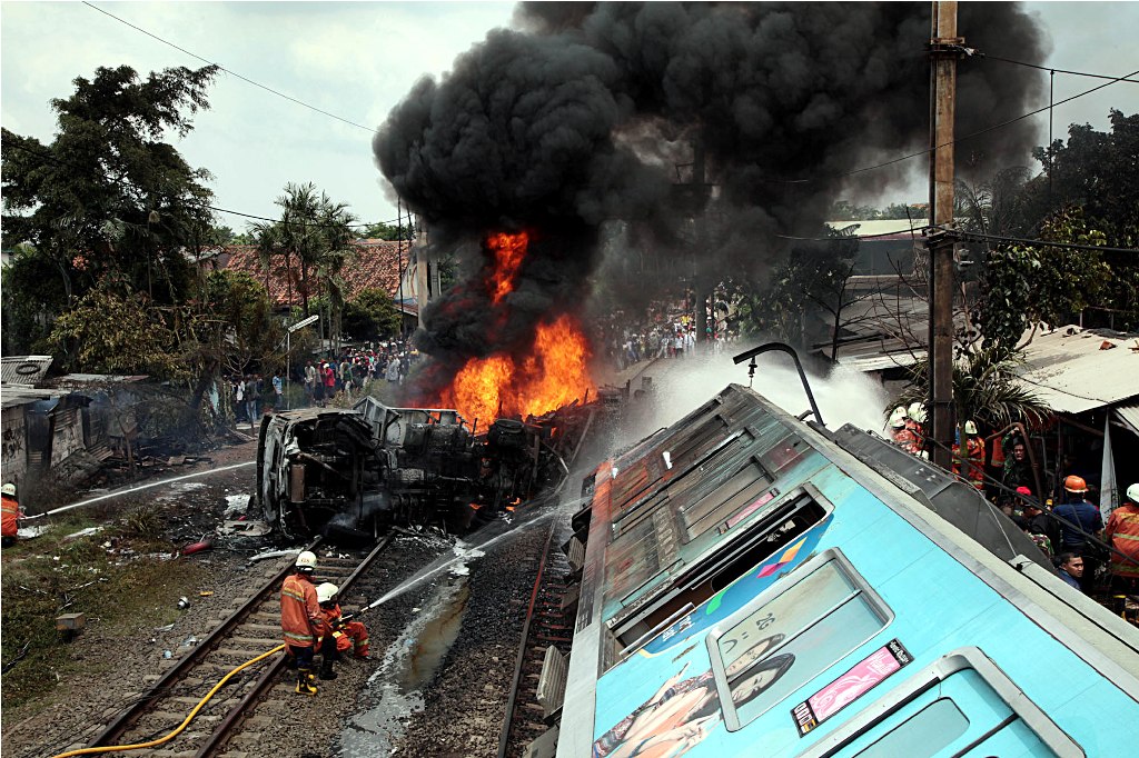 Kecelakaan dipicu oleh truk tanki bahan bakar minyak yang menerobos masuk. Padahal, menurut saksi, petugas perlintasan telah membunyikan alarm.