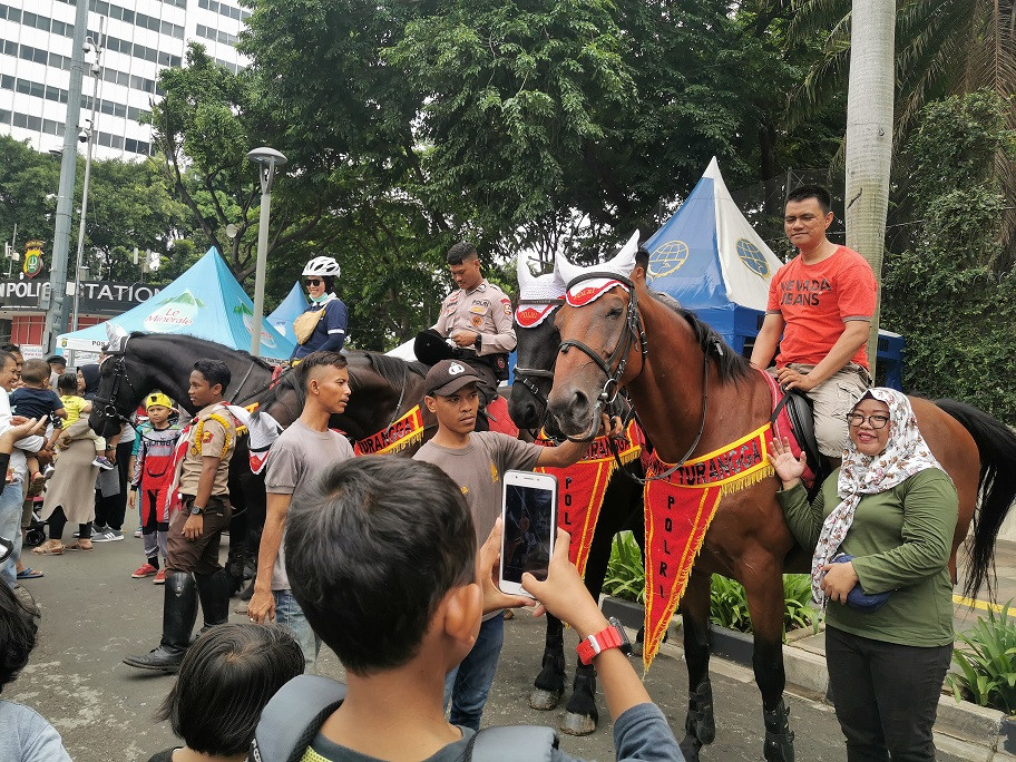 Salah satu warga, Praden Prandra, 26, mengaku senang dengan kehadiran kuda-kuda di kegiatan CFD. Praden jadi bisa merasakan menunggangi kuda gagah milik kepolisian.