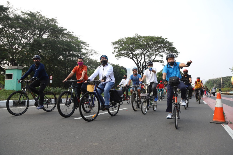 car free day (CFD) menjadi kegiatan bersepeda yang tersebar di 32 kawasan. Hal ini dilakukan untuk memastikan penerapan protokol kesehatan berjalan dengan baik.