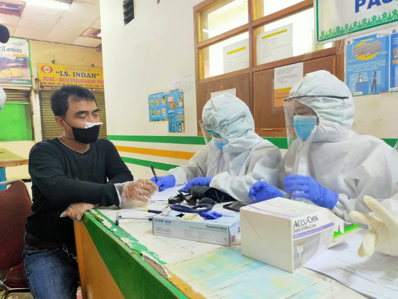 Mereka dibagi kedalam tiga kelompok guna melayani pedagang dan pembeli yang hendak melakukan rapid test. "Untuk hari ini kita sediakan 100 alat rapid test karena ini kan untuk sampel," kata Mundari.