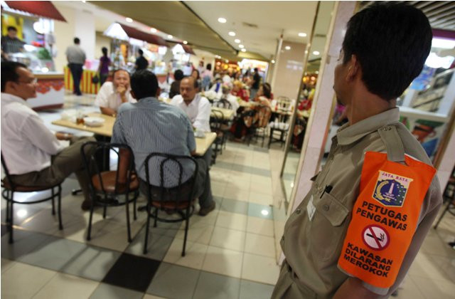 Aturan kawasan dilarang merokok tertuang dalam Perda DKI Jakarta Nomor 75 Tahun 2005. Aturan ini sempat ketat dipraktikan di tempat-tempat umum. Namun, belakangan, sebagian besar tempat umum di Jakarta belum bebas rokok.