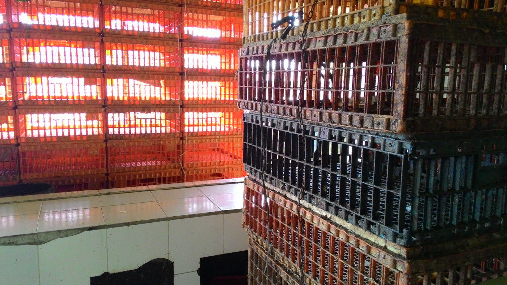 Metrotvnews.com, lapak daging ayam di lantai dua Pasar Kramatjati sepi aktivitas jual beli. Hanya terlihat keranjang ayam kosong menumpuk.