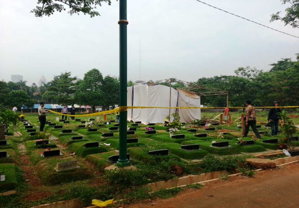 Pukul 07.42 WIB, petugas Polsek Pasar Minggu bersama tim forensik dari Rumah Sakit Bhayangkara TK IR Said Sukanto, Kramat Jati, Jakarta Selatan tiba di lokasi. Tidak lama kemudian, polisi segera memasang police line di sekitar makam Audi.
