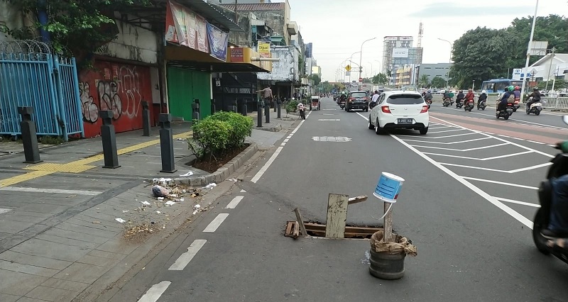 pencuri besi penutup saluran air di Jalan Kramat Raya,