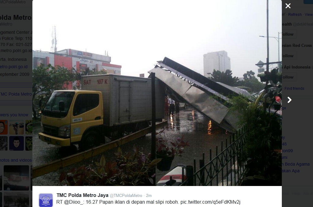 Seperti diberitakan, dua baliho roboh di depan Wisma BCA Jalan S Parman, Slipi, Jakarta Barat, pada Selasa (22/4/2014) sore. Kejadian itu mengakibatkan tiga orang tertimpa dan dilarikan ke rumah sakit.