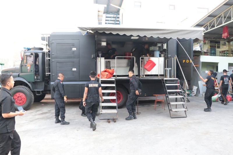 Jakarta: Polda Metro Jaya menerjunkan sejumlah personel Brimob dan Samapta untuk menyiapkan dapur umum bagi korban
