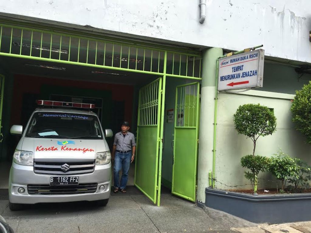 "Tadi saya baru sampai di rumah mandi, terus langsung disuruh jemput lagi. katanya ini sopir taksinya," kata petugas ambulans RSCM yang enggan menyebutkan nama.