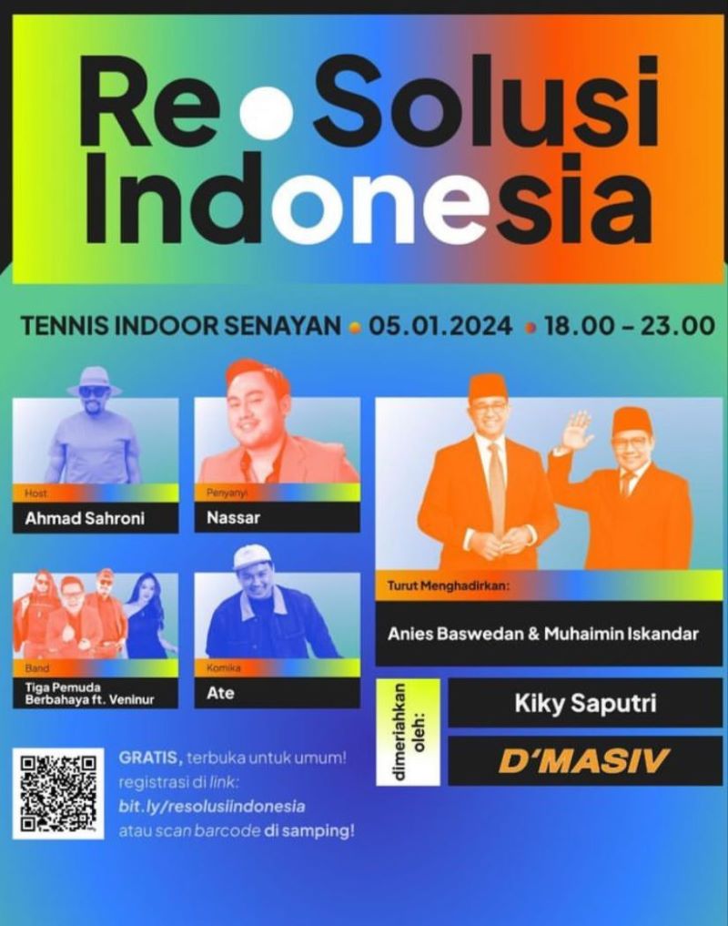 Sebelumnya, Anies dan Muhaimin bakal menghadiri Acara Resolusi Indonesia di Tennis Indoor Senayan, pada Jumat, 5 Januari 2024. Kapasitas tiket sebanyak 4 ribu penonton habis dalam waktu 2 jam.