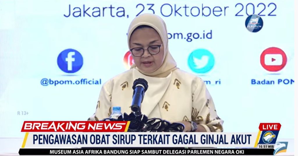 "Termorex sirup obat demam untuk produksi PT Konimex ini sebelumnya dinyatakan tidak aman tapi kemudian kita kembangkan lagi ternyata aman," kata dia Penny dalam konferensi pers Minggu, 23 Oktober 2022.