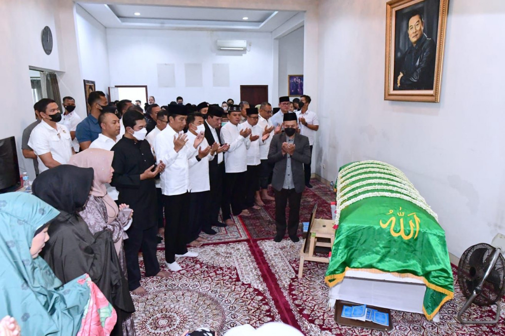 Presiden juga melakukan salat jenazah bersama pelayat lainnya untuk mendiang almarhumah Koesni Harningsih dan berdoa agar almarhumah diterima di sisi Tuhan Yang Maha Esa.