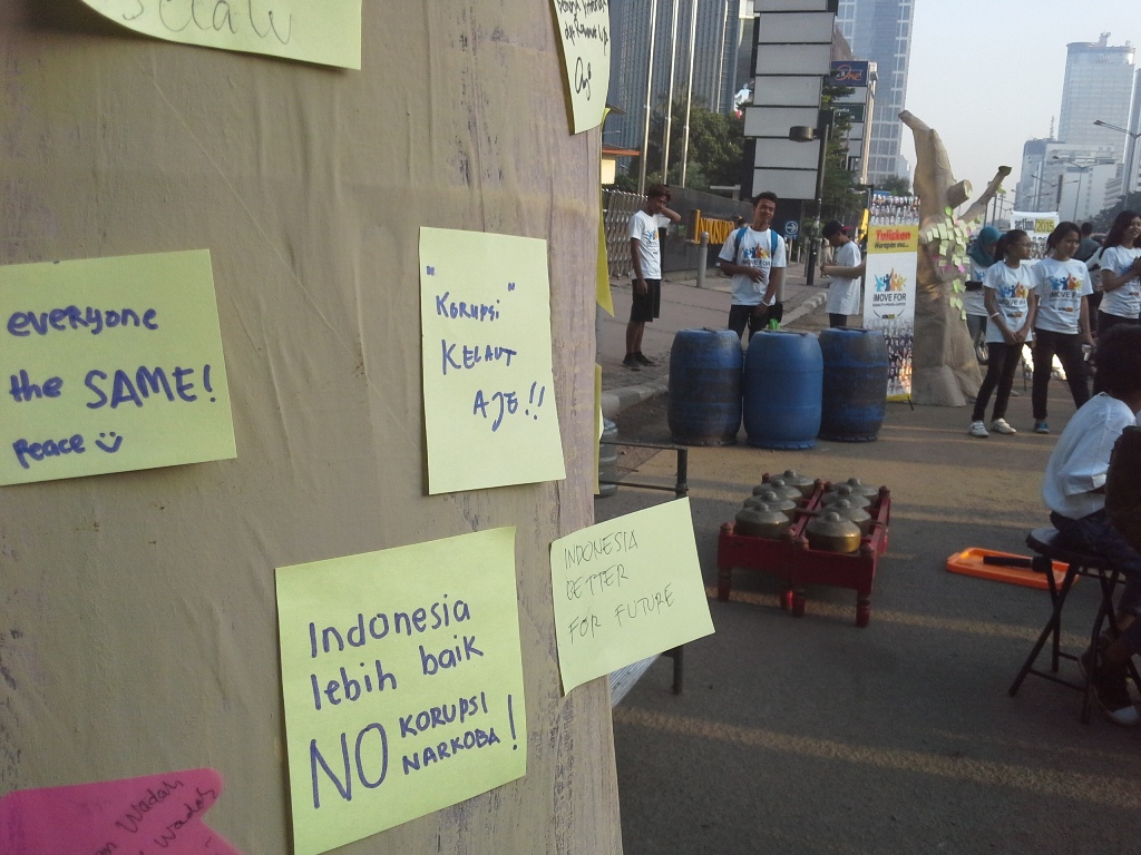 Car Free Day (CFD), dengan menuliskan harapan di pohon harapan untuk Indonesia.