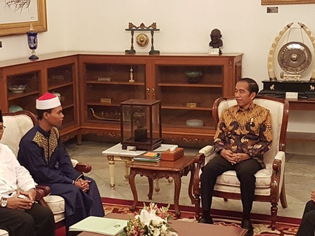 Jakarta: Juara pertama Tilawah Al Quran MTQ Internasional ke-7 di Istanbul, Turki, Syamsuri Firdaus mengaku senang bisa bertemu dengan Presiden Joko Widodo. Kepada Jokowi, dia menceritakan pengalamannya mendapat penghargaan langsung dari Presiden Turki, Recep Tayyip Erdogan.