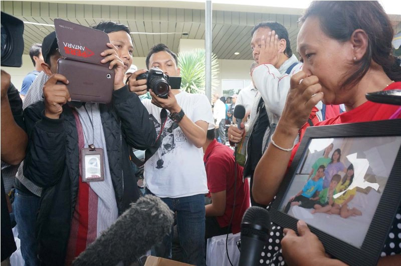 Mereka ikut menyaksikan jumpa pers Kepala Basarnas di televisi. Mereka tampak sangat syok. Beberapa di antaranya dievakuasi ke ruang kesehatan untuk mendapat pertolongan.