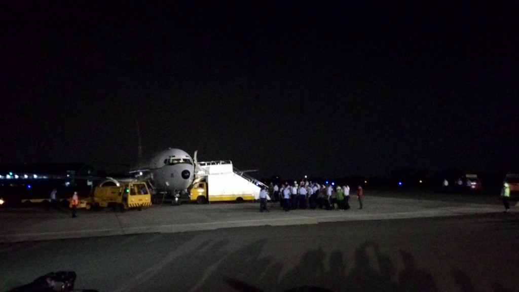 Tim evakuasi beserta WNI dan WNA ini tiba pukul 19.40 WIB setelah berangkat dari Kathmandu, Nepal, pukul 08.00 waktu setempat. Tim terbang menggunakan pesawat Boeing 737-400 TNI AU.