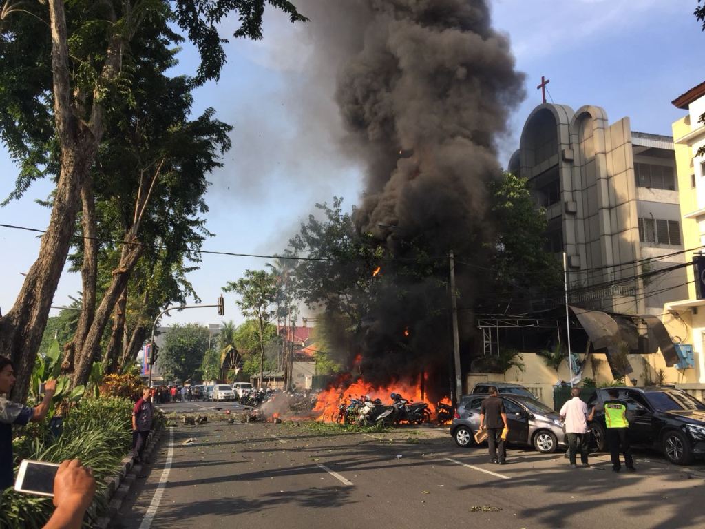Pagi tadi, ledakan mengguncang Gereja Kristen Indonesia di Jalan Diponegoro, Gereja Santa Maria Tak Bercela di Jalan Ngagel Madya, dan Gereja Pentakosta di Jalan Arjuna, Surabaya, Jawa Timur. Peristiwa tersebut terjadi pada sekitar pukul 07.30 WIB.