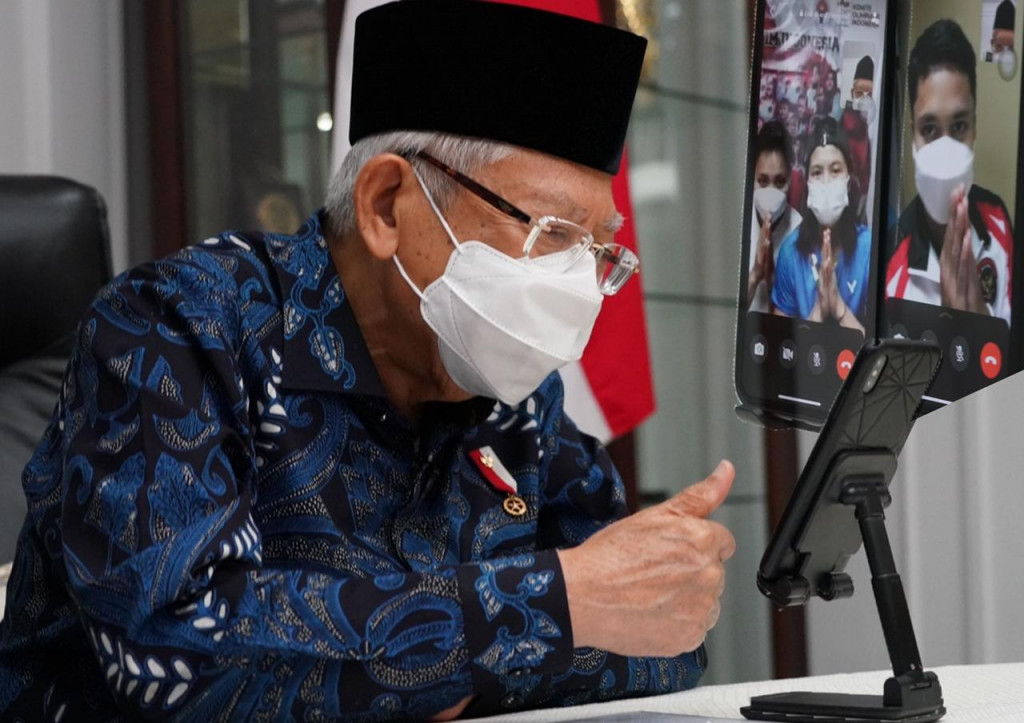 Jakarta: Wakil Presiden (Wapres) Ma'ruf Amin menyapa kontingen Indonesia yang berlaga di Olimpiade Tokyo 2020. Ma'ruf berterima kasih kepada para atlet karena sudah memperoleh medali untuk Tanah Air.