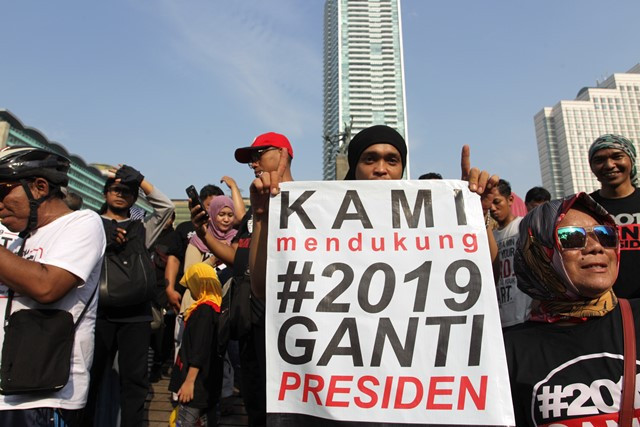 Jakarta: Sebuah video yang merekam sejumlah orang yang mengenakan kaus #2019GantiPresiden diduga mengintimidasi orang yang mengenakan kaus #DiaSibukKerja ramai di media sosial. Kejadian tersebut diduga terjadi pada acara car free day di sekitar Bundaran Hotel Indonesia, Jakarta Pusat, Minggu, 29 April 2018 pagi tadi.