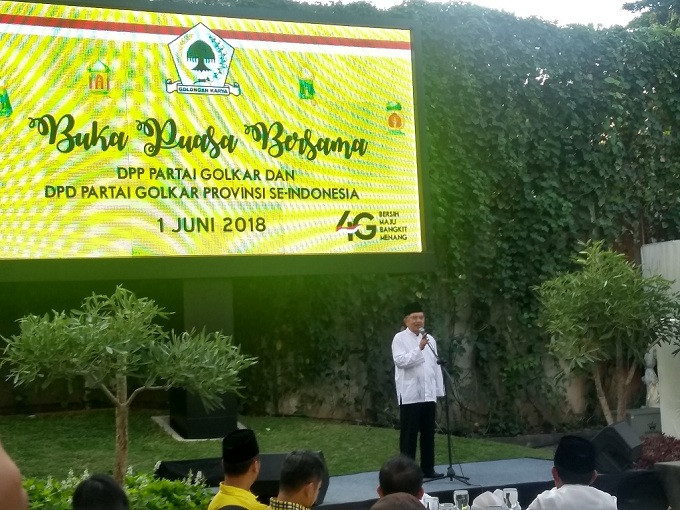 "Mungkin partai lain belum mengadakan buka bersama, tapi partai Golkar sudah mengadakannya. Makin tipis perbedaan partai nasional dan agamis," ujar JK di DPD Golkar DKI Jakarta, Jumat, 1 Juni 2018.