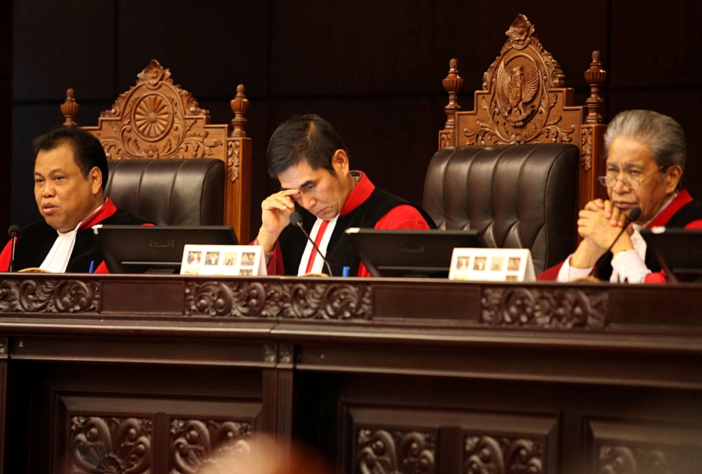 medcom.id, Jakarta: Mantan Hakim Mahkamah Konstitusi Harjono maju sebagai saksi ahli dari termohon Komisi Pemilihan Umum, dalam sidang perselisihan hasil pemilihan umum (PHPU) di MK. Ia pun memberi penjelasan tentang pengertian kecurangan pemilu secara terstruktur, sistematis, dan masif (TSM) sebagaimana yang dituduhkan pemohon Prabowo-Hatta.
