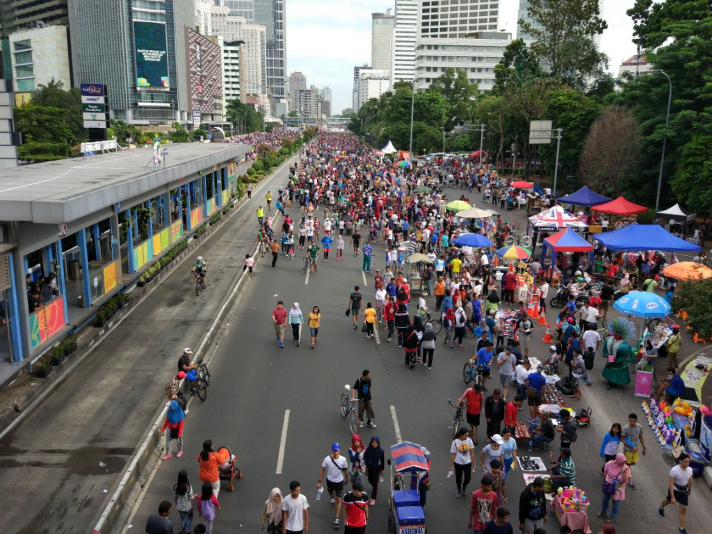 Jakarta: Sejumlah pengunjung area car free day (CFD) di sekitar Bundaran Hotel Indonesia, Jakarta Pusat, tak setuju hari bebas kendaraan bermotor (HBKB) dijadikan tempat berpolitik. Acara mingguan itu diharapkan kembali ke fungsinya sebagai sarana olahraga warga.