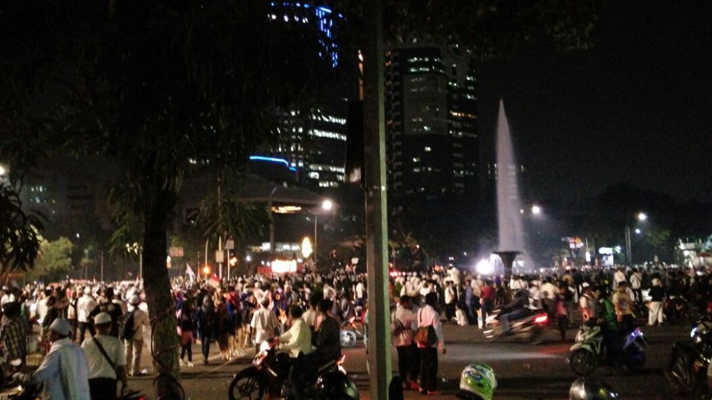 Sebelumnya ribuan orang berpakaian serba putih, sedari pagi hingga berita ini disusun, turun ke jalan. Mereka menuntut Basuki `Ahok` Tjahaja Purnama disanksi. Ahok dituding telah menistakan agama.