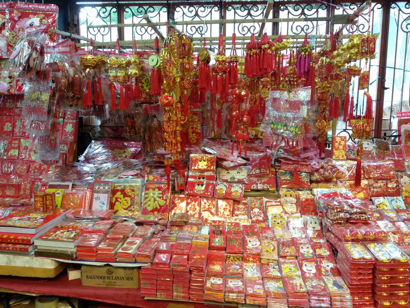 "Penjualan amplop angpao paling dominan tiap tahun," ujar Remet, penjual pernak-pernik Imlek di kawasan Glodok,