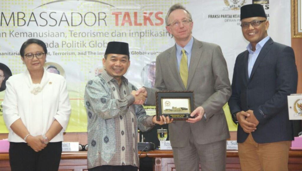 "Apa yang kita lakukan hari ini adalah dalam rangka melaksanakan fungsi diplomasi parlemen sehingga kami di DPR turut berkontribusi dan mendukung pemerintah dalam melaksanakan tujuan nasional kita yaitu mewujudkan ketertiban dunia berdasarkan kemerdekaan, perdamaian abadi, dan keadilan sosial," kata Jazuli dalam acara bertema 'Kemanusiaan, Terorisme dan Implikasinya Terhadap Politik Global' di Komplek Parlemen, Senayan, Jakarta, Rabu 24 Oktober 2017.