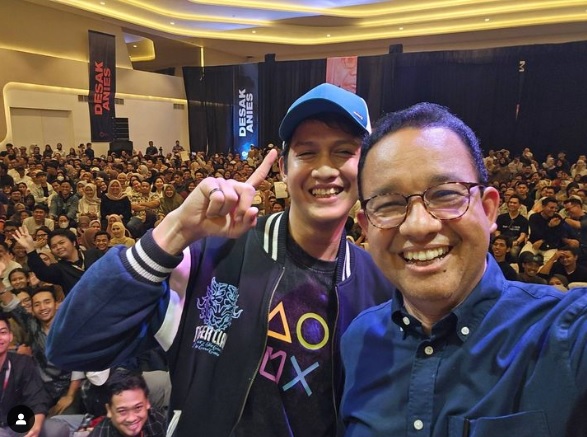 Anies meminta foto dengan penanya bernama Manay atau lebih dikenal dengan Evos Manay. Bukan tanpa alasan, calon presiden nomor urut satu itu ingin berfoto dengan juara dunia esports.