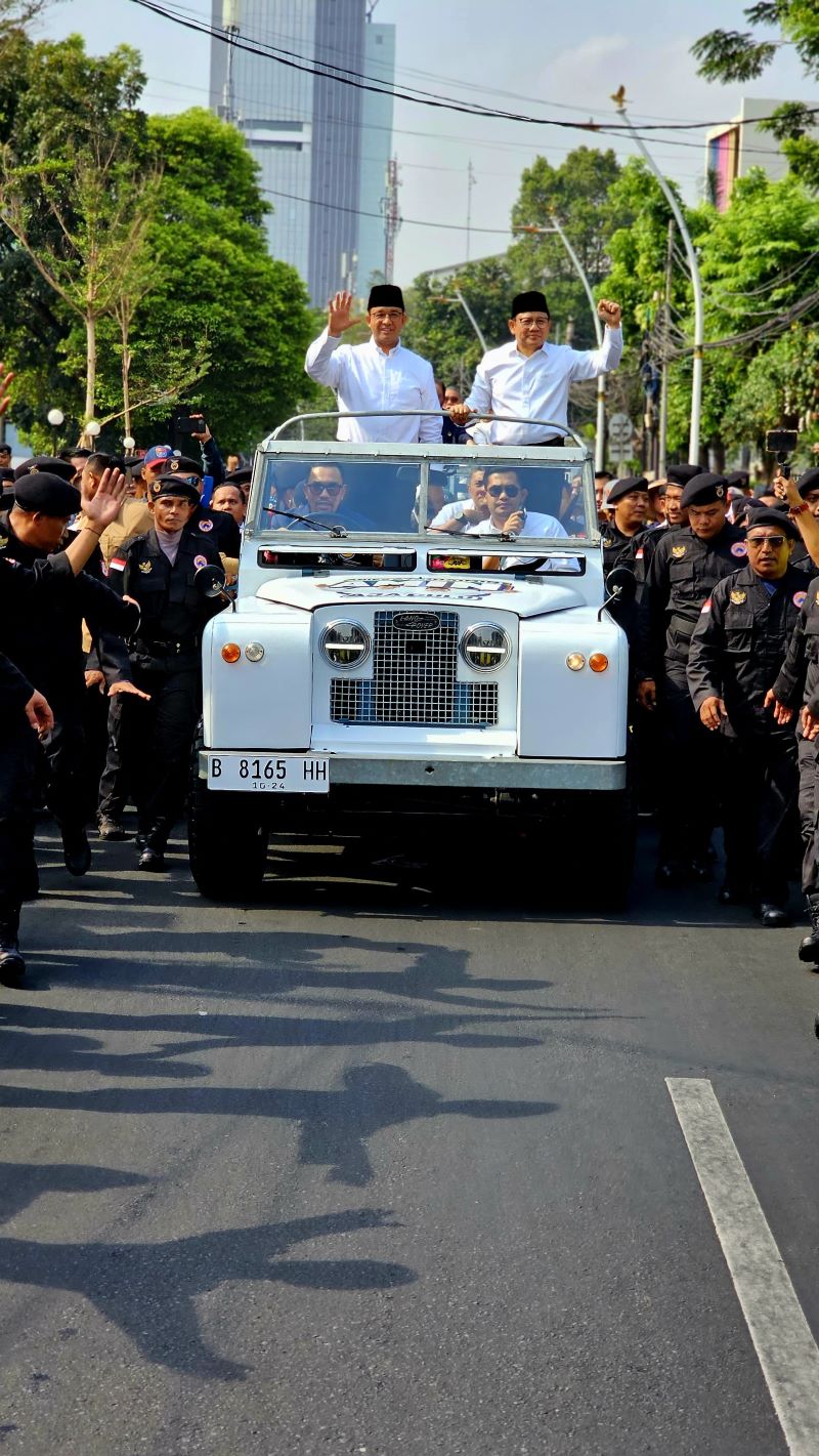 Jakarta: Pasangan calon presiden dan wakil presiden (capres-cawapres) Anies Baswedan dan Muhaimin Iskandar (Amin) mendaftar ke Komisi Pemilihan Umum (KPU). Berangkat menggunakan mobil Jeep dari NasDem Tower, pasangan calon (paslon) tersebut disopiri Bendahara Umum (Bendum) DPP Partai NasDem Ahmad Sahroni.