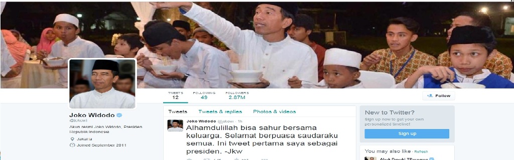 Cuitan pertama Presiden Jokowi setelah menghilang beberapa waktu dari sosial media twitter pun mengucapkan selamat berpuasa kepada mereka yang menjalankannya. Sontak, kemunculan akun @jokowi yang bertepatan dengan ulang tahun ke 54 Presiden Jokowi menjadi sasaran empuk bagi banyak orang untuk mengucapkan selamat ulang tahun.