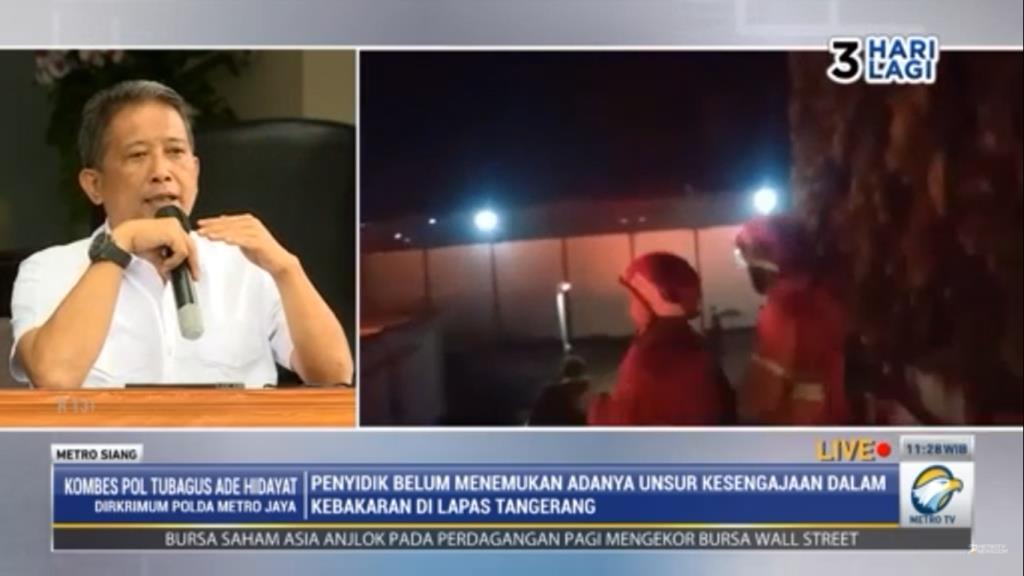 Jakarta: Polda Metro Jaya buka suara mengenai penyebab kebakaran Lembaga Pemasyarakatan (Lapas) Klas 1 Tangerang pada beberapa pekan lalu. Direktur Kriminal Umum Polda Metro Jaya (PMJ) Kombes Pol Tubagus Ade Hidayat memastikan tidak ada unsur kesengajaan dalam peristiwa tersebut.