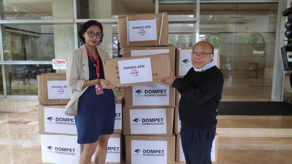 Jakarta: Yayasan Cinta Anak Bangsa (YCAB) memberikan bantuan alat pelindung diri (APD) untuk tenaga kesehatan. Bantuan disalurkan melalui Dompet Kemanusiaan Media Group.