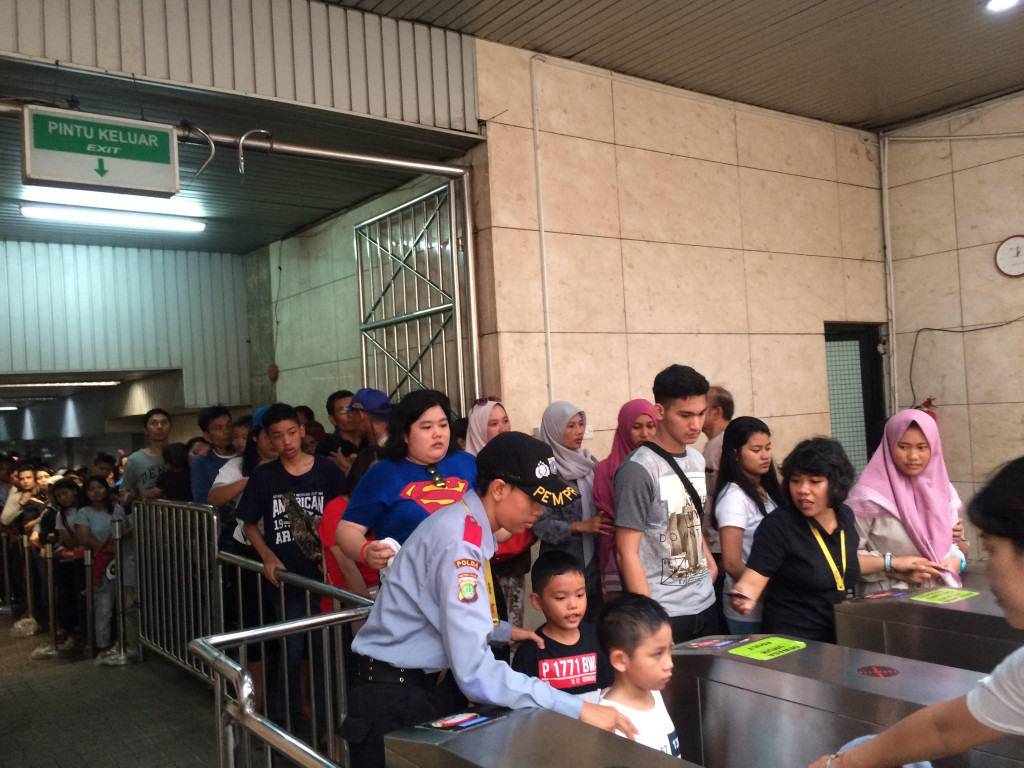 Hari ini, total pengunjung yang masuk ke tugu Monas mencapai 12.000. Kemungkinan, jumlah itu akan terus bertambah sampai tempat destinasi ini ditutup pada pukul 22.00.