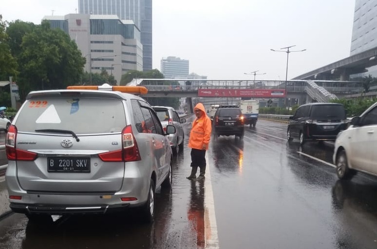 Irra mengatakan genangan terjadi sejak hujan mengguyur Jakarta sekitar pukul 14.00 WIB. Jasa Marga mengatur lalu lintas di sekitar lokasi kejadian guna keselamatan dan keamanan pengguna jalan.