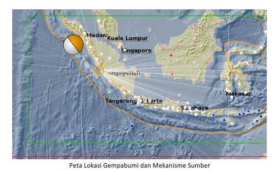 Gempa terjadi pukul 05.56.01 WIB dengan kekuatan 6,5 magnitude (M) di 2.29° Lintang Selatan dan 100.46° Bujur Timur di kedalaman 72 kilometer. Gempa bumi berpusat di laut 79 kilometer Barat Daya Pesisir Selatan-Sumbar.