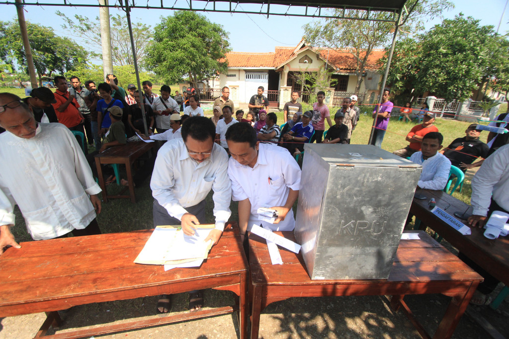 Sejumlah warga menyalurkan hak suaranya di TPS 20 Pondok Pucung Karang Tengah sebelum berangkat kerja. Ketua KPU Kota Tangerang, Sanusi Pane mengatakan, undangan kepada warga sudah disampaikan sejak malam hari.