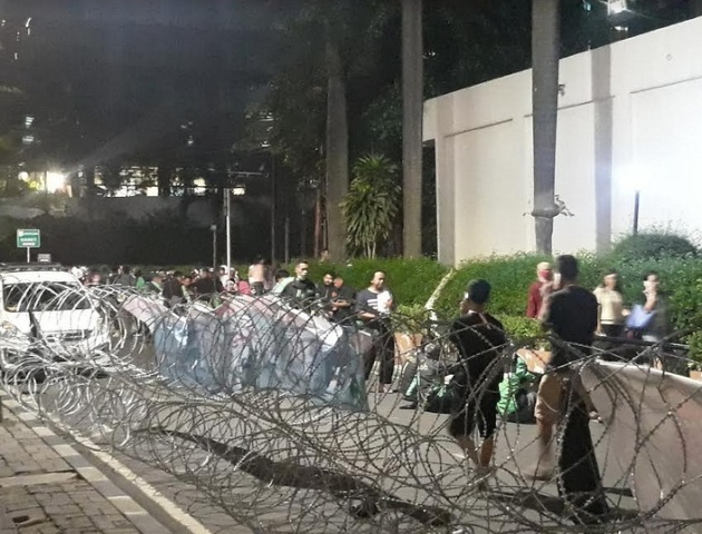 driver Grab yang berdemo di kantor Grab, Gedung Lippo Kuningan, Jakarta Selatan, masih bertahan. Penanggung jawab aksi, Wiwit Sudarsono, mengancam akan terus bertahan di lokasi.