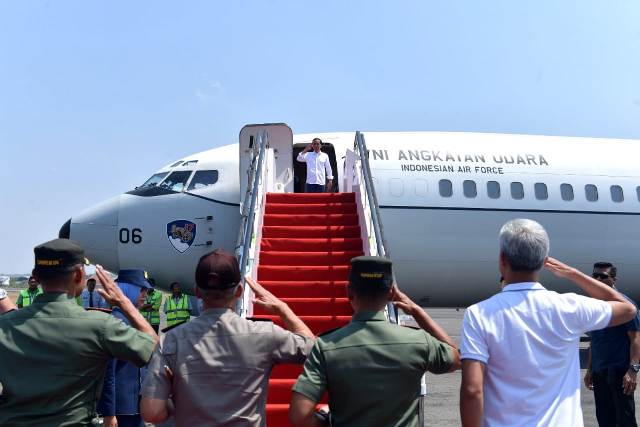 Jokowi berangkat setelah berkegiatan di Solo, Jawa Tengah. Jokowi dan rombongan menggunakan Pesawat Boeing 737-400 TNI AU melalui Pangkalan TNI AU Adi Soemarmo, Surakarta. Rombongan Jokowi lepas landas pukul 10.07 WIB.