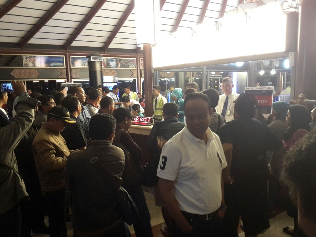 Pantauan di terminal II Bandara Internasional Soetta Tanggerang Banten penumpang mulai kesal kata-kata kasar pun sempat terlontar.