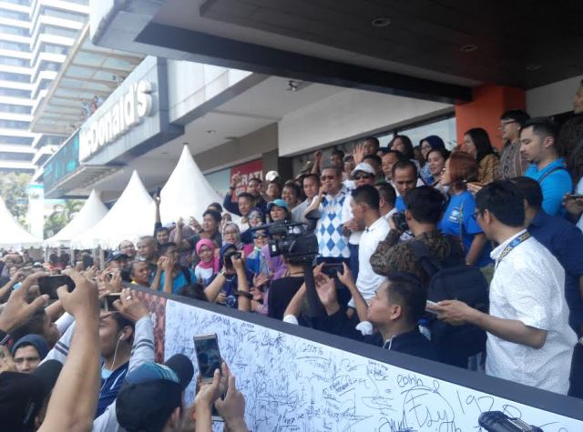 Sambutan terhadap SBY begitu ramai dan heboh. Pamor Presiden RI keenam dua periode ini masih cukup tinggi.