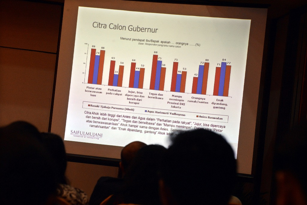 "Pertanyaan 'jika Ahok tersangka' dan 'tidak tersangka' itu dilakukan pada hari yang sama. Ketika diumumkan setelah penetapan Ahok sebagai tersangka maka terkesan elektabilitas Ahok merosot tajam," kata Ikrar.