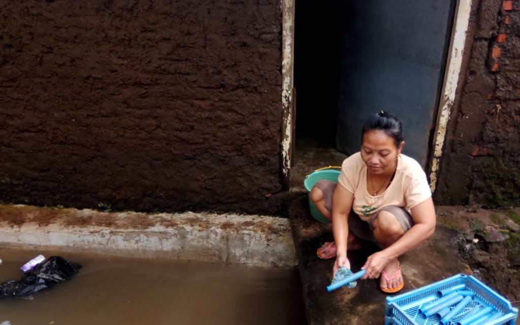 Banjir tidak hanya merendam jalan raya. Air juga menggenangi permukiman warga di sepanjang Jalan Tongtek menuju Jatinegara Barat.