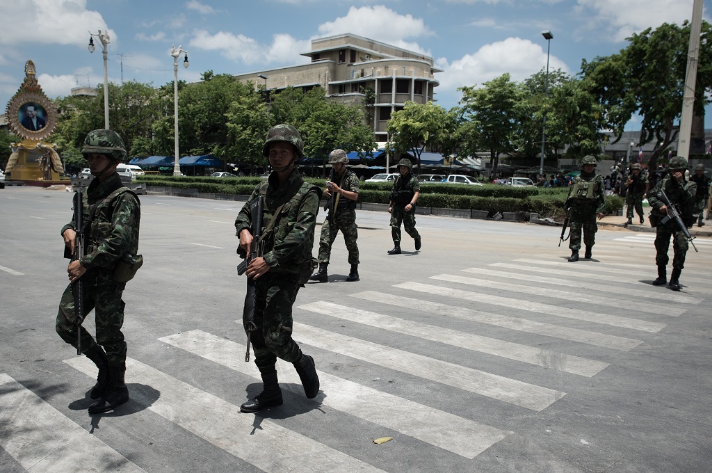 Setelah deklarasi kudeta, militer Thailand memberlakukan larangan jam malam mulai pukul 10.00 malam hingga 05 pagi. Selain itu tentara juga dikerahkan untuk membubarkan demonstran yang mendirikan kamp di dalam dan sekitar Bangkok.