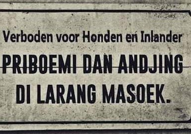 Verboden voor Honden en Inlanders' yang artinya 'Dilarang masuk untuk anjing dan orang pribumi' yang menyamakan orang Indonesia dengan." ujar Alghif.