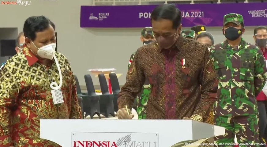 Jakarta: Presiden Joko Widodo (Jokowi) menandatangani prasasti venue Pekan Olahraga Nasional (PON) XX Papua. Jokowi berharap fasilitas olahraga itu dirawat dan dimanfaatkan meski PON selesai.