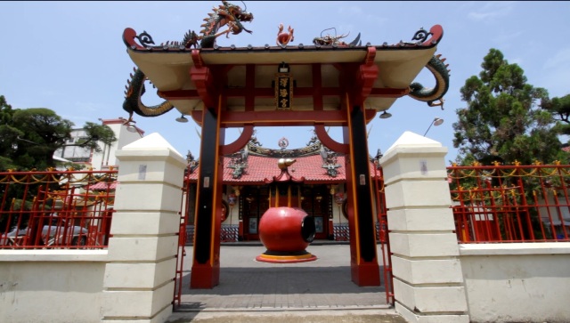Jawa Tengah: Tiga altar utama langsung menyambut pengunjung yang memasuki gedung utama Klenteng Tek Hay Kiong di Jalan Gurame, Tegal, Jawa Tengah. Di tengah klenteng merupakan tempat pemujaan bagi dewa utama atau tuan rumah klenteng ini: Tek Hay Cin Jin.
