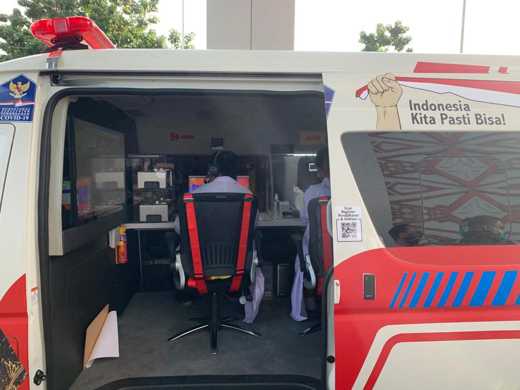 Jakarta: Mobil Laboratorium bio safety level dua (lab drive thru) mempercepat tes virus korona (covid-19) via polymerase chain reaction (PCR). Upaya memotong rantai penyebaran covid-19 semakin efektif.