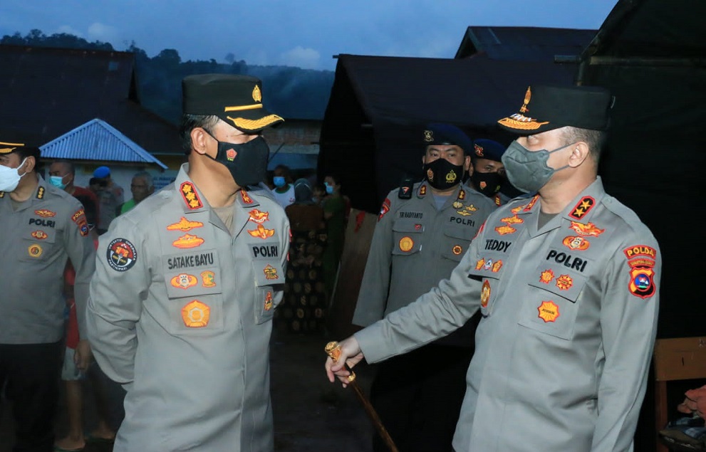 Teddy meninjau langsung posko pengungsian di lapangan depan MAN 4 Pasaman Barat, Limpato, Nagari Talu Kecamatan Talamau, Kabupaten Pasaman Barat pada Minggu, 27 Februari 2022. Dia didampingi beberapa Pejabat Utama Polda Sumbar untuk melihat kondisi warga di posko pengungsian.